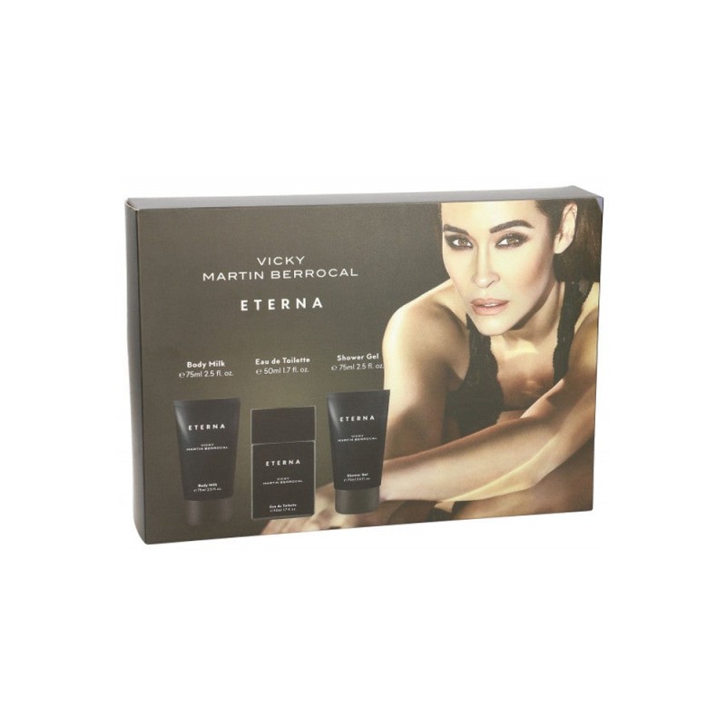 Presentamos del Fabricante Nuvaria Eau de Toilette Eterna de Vicky Martin Berrocal, de 50 ml con vaporizador, con body milk de 75 ml, con gel de baño de 75 ml, estuche de colonia, para mujeres.