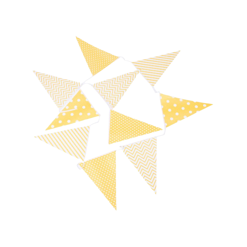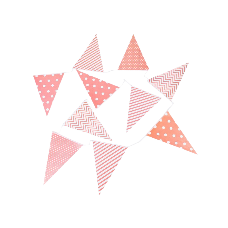Guirnaldas decorativas con diseños de lunares, rayas, zig zag en varios colores: rosa, verde y amarillo. Se escogen en las variantes del producto.